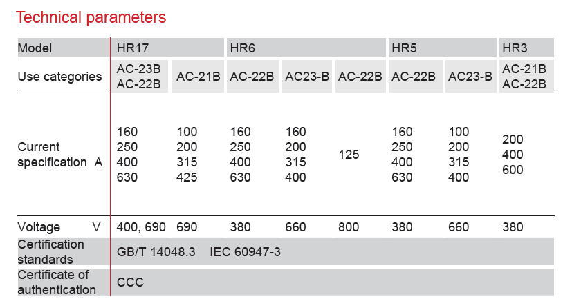 HR6 series fuse type disconnector is mainly used in distribution circuits and motor circuits with a rated voltage AC380V and 660V as power switches, disconnectors, emergency switches, and it can be used for circuit protection, but generally not used to directly power on/off a single motor.