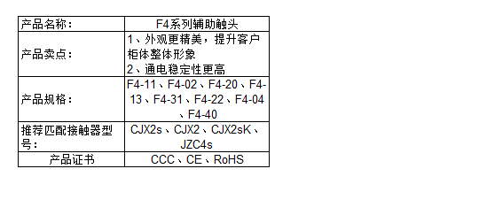 Home page >Products >Industrial Control >Motor Control And Protection >Contactor Accessories >F4 Series Auxiliary Contacts