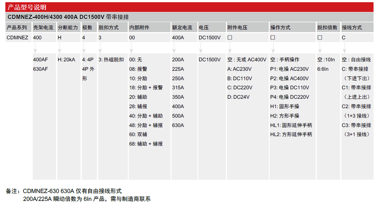 CDMNEZ DC moulded case circuit breaker is suitable for DC circuit with a rated voltage DC1500V and a rated current 200A~630A, and can be widely used combiner box, inverter, and energy storage system in photovoltaic power generation and energy storage industry for electric energy distribution and for line equipment protection to avoid hazards caused by faults such as overload and short circuit.