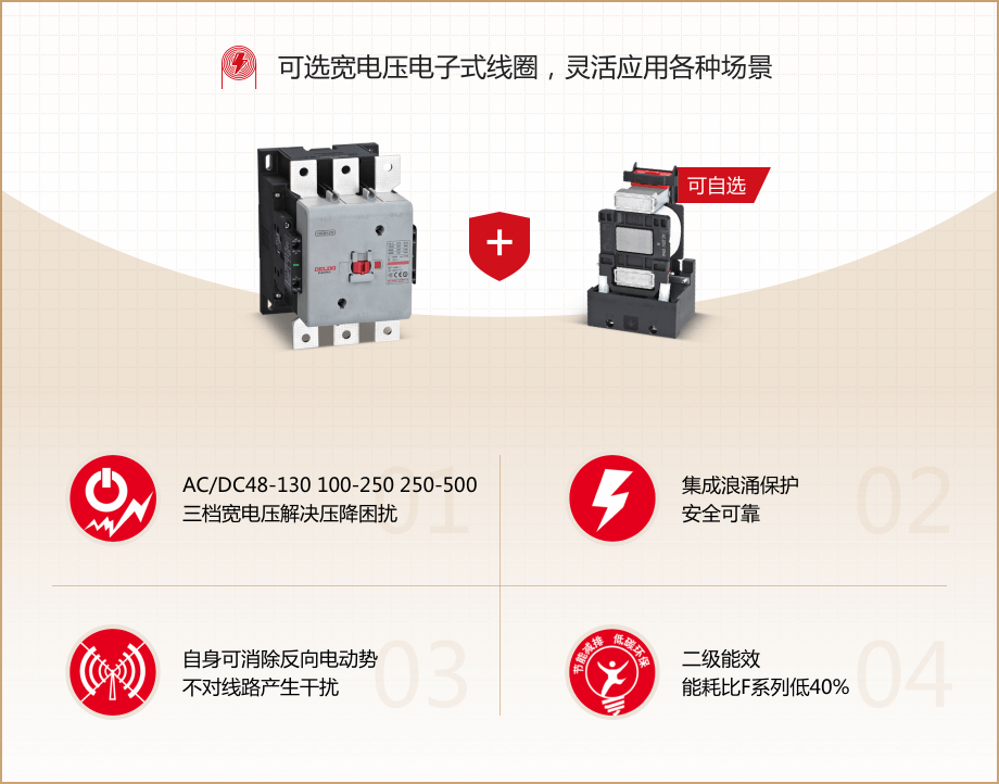 ? CDC6H系列電動機控制與保護產(chǎn)品采用創(chuàng)新技術(shù)平臺, 是經(jīng)深掘客戶需求, 革新設(shè)計,精心打造的新一代產(chǎn)品, 寬度更小, 接線更便捷, 保護更全面。